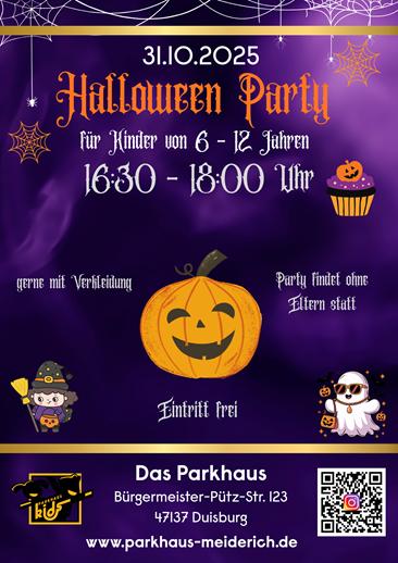 Am Freitag, den 31.10.2025, dreht sich im Parkhaus- Saal alles um Hexen, Kürbisse und Vampire. Auch in diesem Jahr veranstalten die „Parkhaus kids“ in der Zeit von 16:30 bis 18:00 Uhr eine kostenlose, lustige und gruselige Halloweenparty mit Musik, Tanz und kleinen Snacks. Alle Kinder zwischen 6 und 12 Jahren sind herzlich eingeladen, sich furchterregend zu verkleiden und mit uns Halloween zu feiern. Wir freuen uns auf eine gelungene Party.