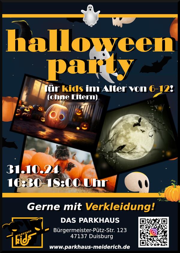 Am Donnerstag, den 31.10.2024, dreht sich im Parkhaus- Saal alles um Hexen, Kürbisse und Vampire. Auch in diesem Jahr veranstalten die „Parkhaus kids“ in der Zeit von 16:30 bis 18:00 Uhr eine kostenlose, lustige und gruselige Halloweenparty mit Musik, Tanz und kleinen Snacks.