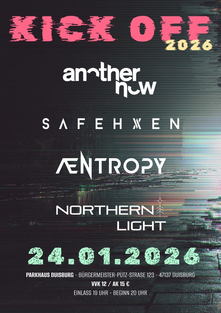 Am Samstag, den 24.01.2026, um 20 Uhr (Einlass 19 Uhr), eröffnen Safehxen ihr musikalisches Jahr 2026 mit Unterstützung von Æntropy, Northern Light & ANOTHER NOW im Parkhaus Meiderich.